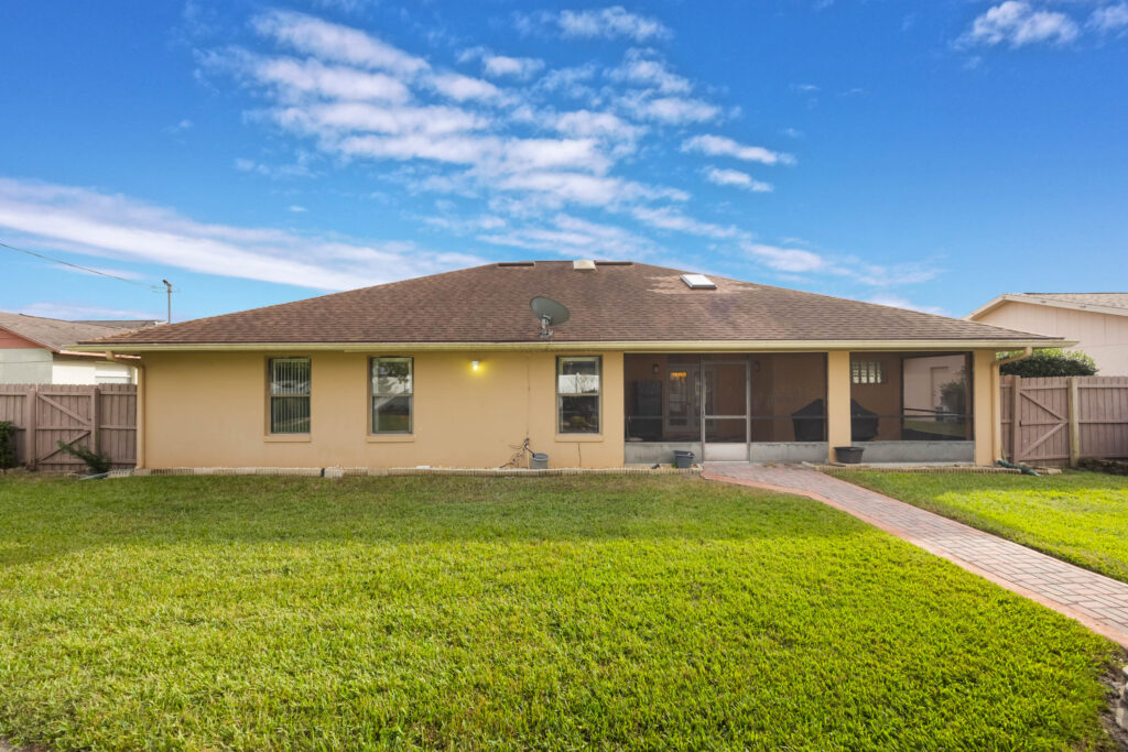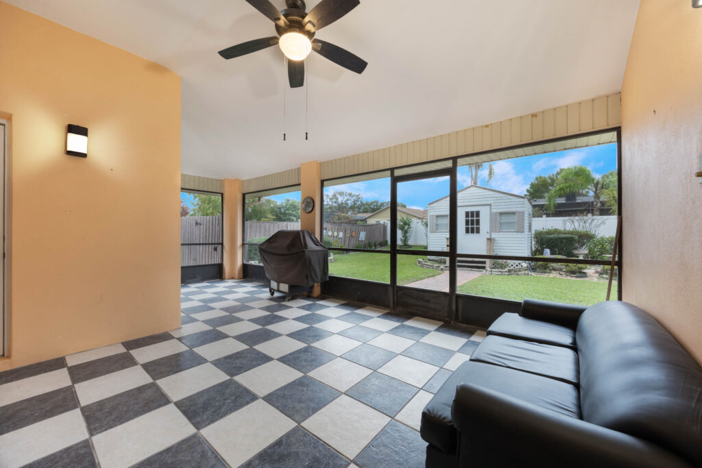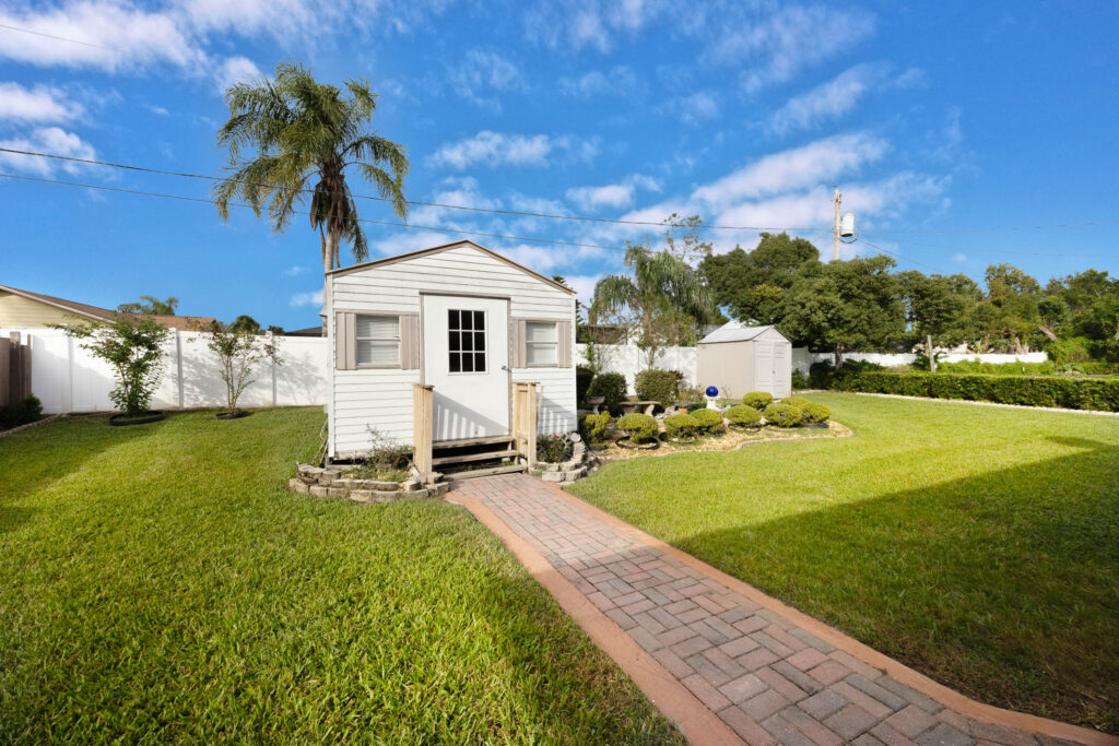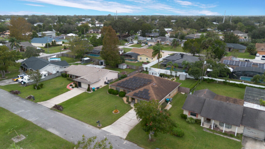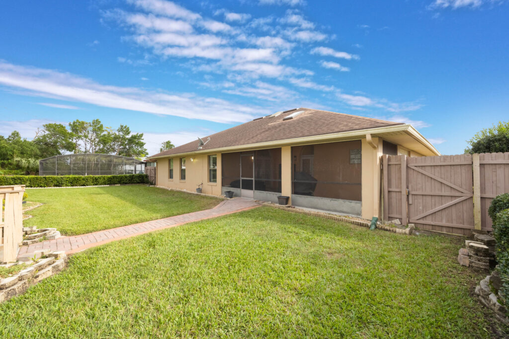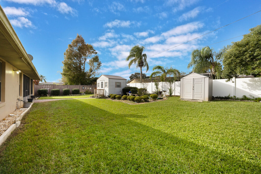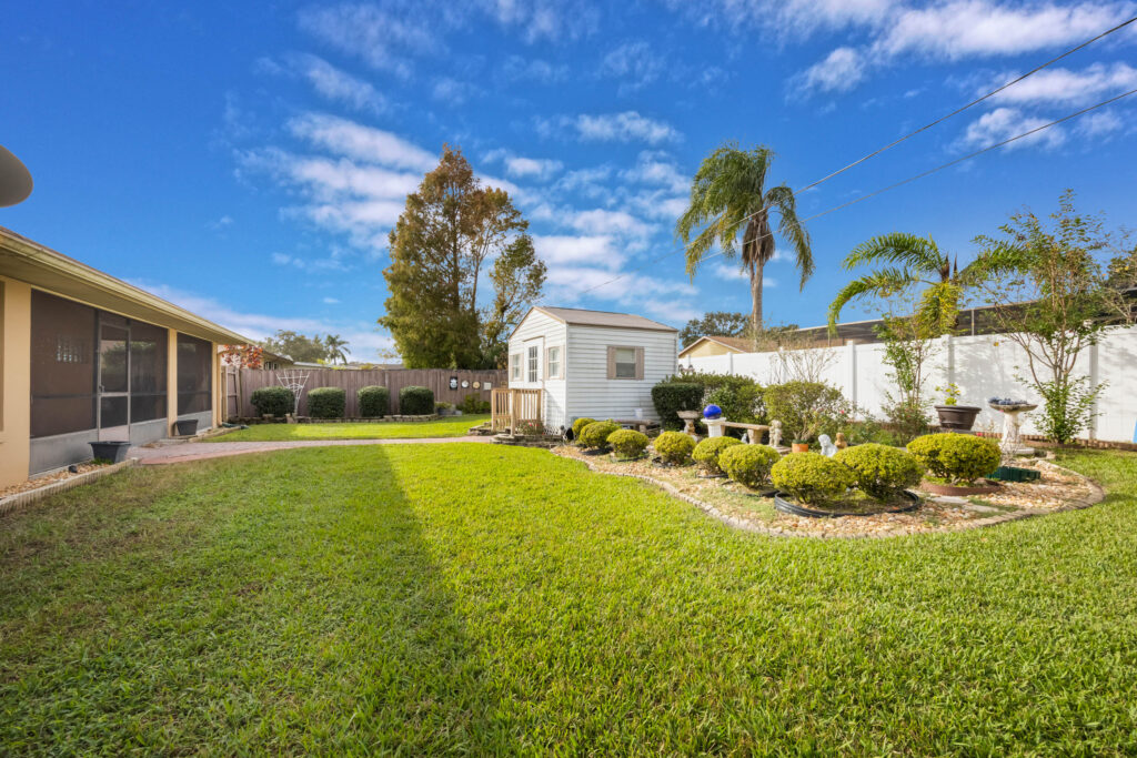 This 3-bedroom stucco beauty has been meticulously maintained and includes recently installed solar roof panels. The home has a great single-level layout, with vaulted ceilings and plenty of natural light. Just beyond the large living room, the kitchen features a dining nook, granite countertops, and a breakfast bar with seating for a crowd. The kitchen is open to both the formal dining room and the family room at the rear of the floorplan. A few steps away, you’ll spend lots of time relaxing in that screened-in lanai, complete with a skylight and ceiling fan. The fenced-in backyard includes landscaped planting beds and two storage sheds. Speaking of sheds, the larger shed has been converted into an art studio and is decked out with A/C and running water. This would make the perfect man cave, she-shed, home office, or climate control storage. The primary bedroom boasts a massive ensuite with a walk-in closet, dual sinks, a makeup vanity, a soaking tub, and a separate shower. It even has direct access to the lanai. On the other side of the floorplan, the guest rooms share the second full bathroom. Those solar panels on the roof will keep your utility bills low, and don’t forget about all the storage in the 2-car garage! This quiet neighborhood puts you close to parks, schools, and medical centers. You’ll be just 5 mins from all the shopping & dining along Saxon Blvd., with easy access to I-4, too. Less than 45 minutes to both Orlando and Daytona Beach!