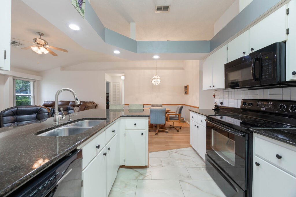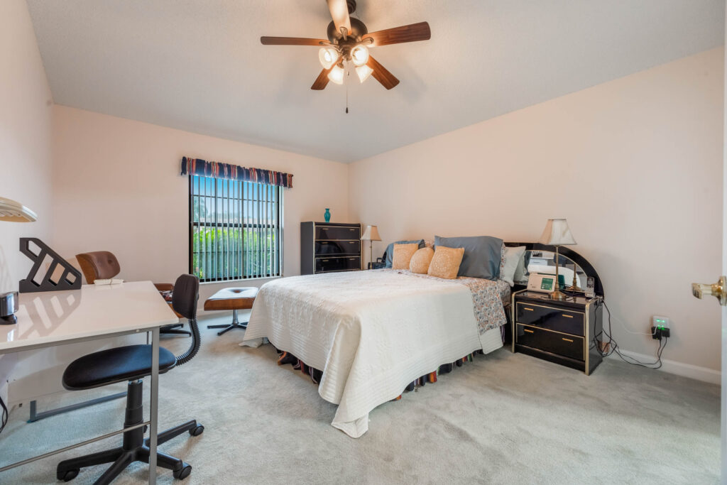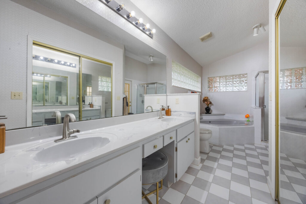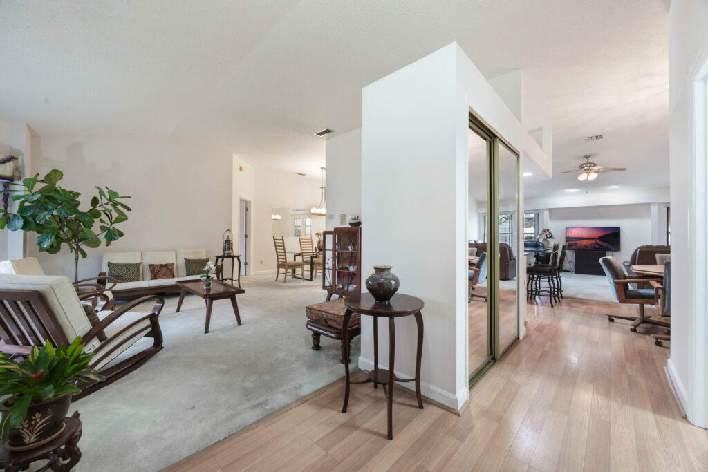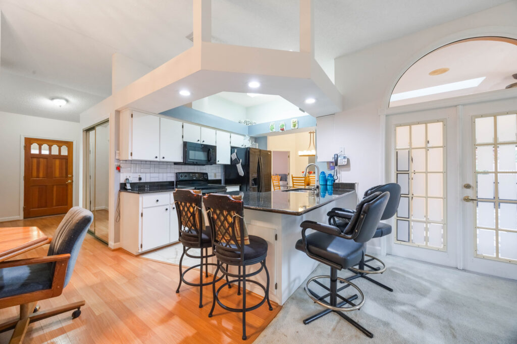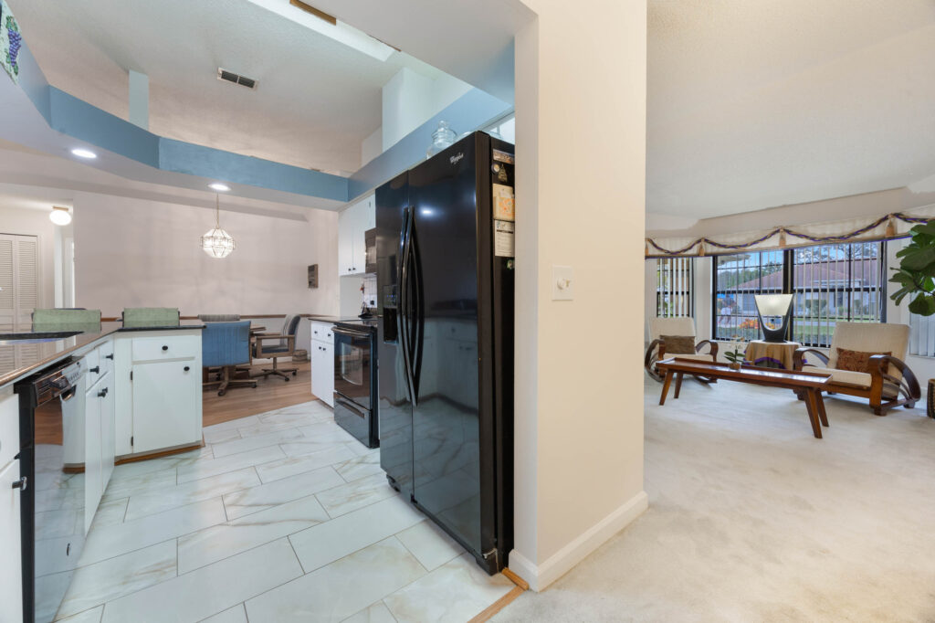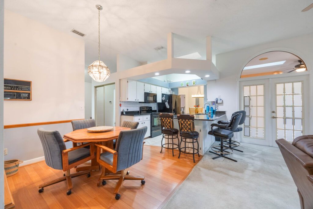 This 3-bedroom stucco beauty has been meticulously maintained and includes recently installed solar roof panels. The home has a great single-level layout, with vaulted ceilings and plenty of natural light. Just beyond the large living room, the kitchen features a dining nook, granite countertops, and a breakfast bar with seating for a crowd. The kitchen is open to both the formal dining room and the family room at the rear of the floorplan. A few steps away, you’ll spend lots of time relaxing in that screened-in lanai, complete with a skylight and ceiling fan. The fenced-in backyard includes landscaped planting beds and two storage sheds. Speaking of sheds, the larger shed has been converted into an art studio and is decked out with A/C and running water. This would make the perfect man cave, she-shed, home office, or climate control storage. The primary bedroom boasts a massive ensuite with a walk-in closet, dual sinks, a makeup vanity, a soaking tub, and a separate shower. It even has direct access to the lanai. On the other side of the floorplan, the guest rooms share the second full bathroom. Those solar panels on the roof will keep your utility bills low, and don’t forget about all the storage in the 2-car garage! This quiet neighborhood puts you close to parks, schools, and medical centers. You’ll be just 5 mins from all the shopping & dining along Saxon Blvd., with easy access to I-4, too. Less than 45 minutes to both Orlando and Daytona Beach!