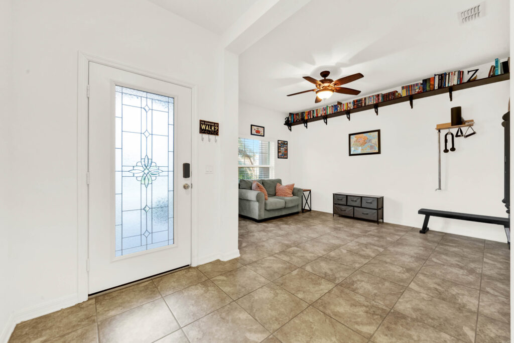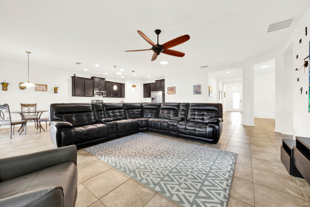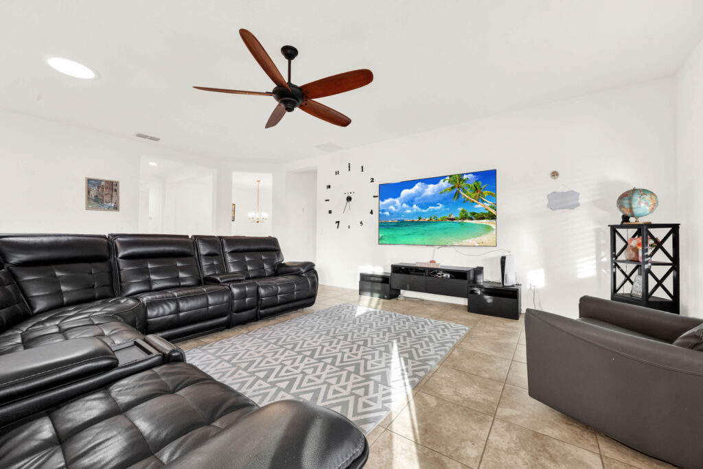 This single-level stucco beauty has solar roof panels and a wonderful layout that can adapt as your lifestyle changes. The home is located in sought-after Grand Island Reserve, a quiet subdivision nestled between Lake Yale & Lake Eustis in the heart of Central Florida’s famous chain of lakes. Through the leaded-glass front door, you’ll find a versatile den (could become bedroom #5) and a formal dining room just off the foyer. The kitchen is open to the living room at the rear of the floorplan and features granite countertops, stainless appliances, a pantry, a breakfast nook and a center island with seating for a crowd. Just steps away, you can entertain friends or enjoy a quiet cup of coffee on the screened-in lanai. The backyard is fully fenced-in, with plenty of space for a playscape, pool and garden. The corner primary bedroom includes a beautiful ensuite with a massive walk-in closet, dual sinks, a soaking tub and a separate shower. Two guest rooms share a hallway bathroom on one side of the floorplan, with the isolated fourth bedroom and third full bathroom on the other side of the house. The huge laundry/mudroom at the entrance of the attached garage offers enough room for a fridge and tons of storage space, too. Don’t forget about the solar roof panels, which will keep your utility bills low, and the EV car charger, a bonus for electric vehicles! Residents of Grand Island Reserve enjoy community amenities like a pool, playground, basketball court, walking trails, cable TV, and more. You can be on the lake or golf course in just a few minutes, with numerous shopping & dining options along FL-19. Just 20 mins to historic Mt. Dora and less than an hour to the beach or all the theme parks!