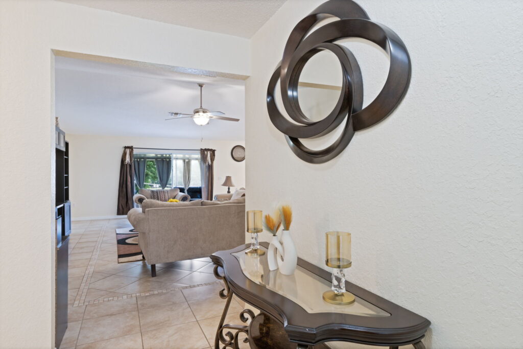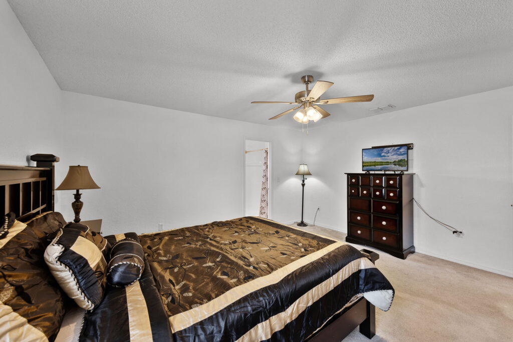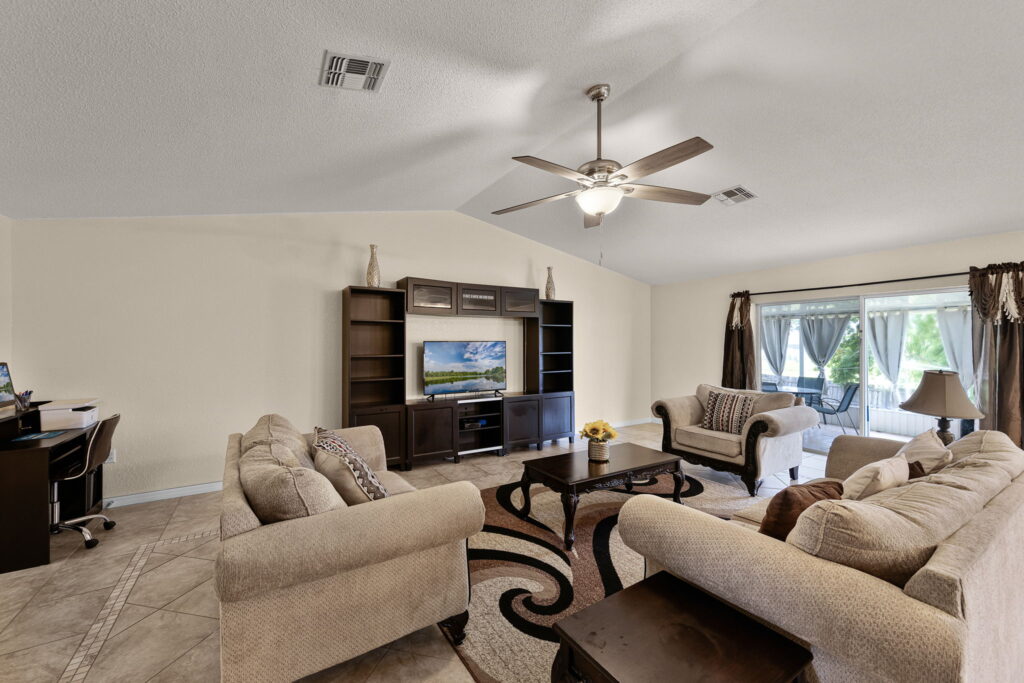 Welcome to this beautifully maintained split-plan home featuring a newer roof (2022), plus fresh interior paint. Enjoy a bright, open floor plan with soaring ceilings in the main living area, flooding the space with natural light and offering a seamless view of the oversized screened patio and private, fenced backyard with no rear neighbors. The kitchen is light and functional, with ample counter space, matching appliances, and a walk-in pantry. The owner’s suite, located privately off the main entry, includes dual walk-in closets, a garden tub, separate walk-in shower, double vanity, and a private water closet. The split floor plan places the additional three bedrooms on the opposite side of the home, sharing a spacious full guest bath. Highland Square offers a convenient location just off Hwy 27, with quick access to I-4 at Posner Park, plus nearby schools, shopping, restaurants, and medical facilities. Schedule your private showing today—this home has it all!