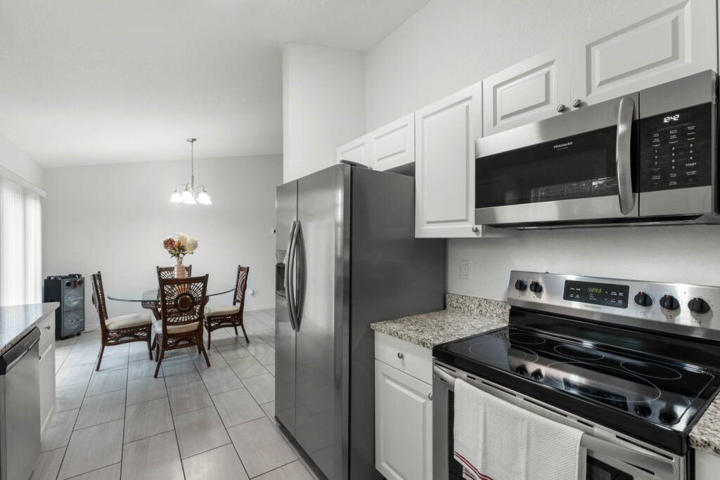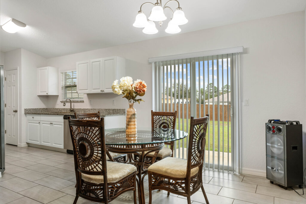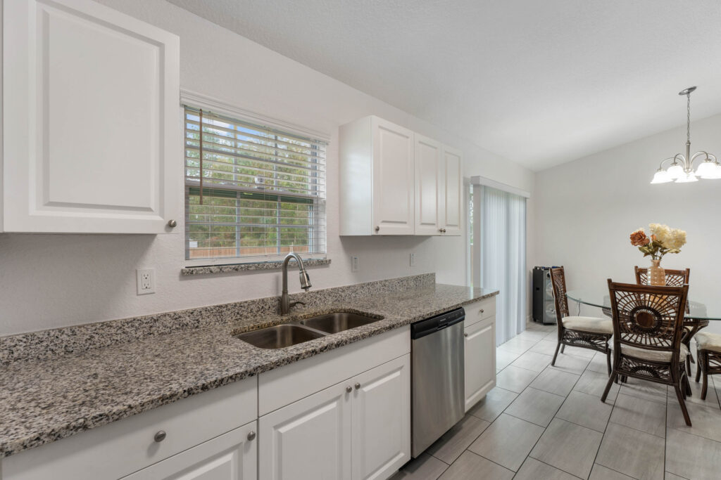The kitchen features granite countertops, stainless appliances, and an oversized pantry. A slider leads to the back patio and the fenced-in backyard just off the dining area. So much room for a shed, playset, garden, or future pool!