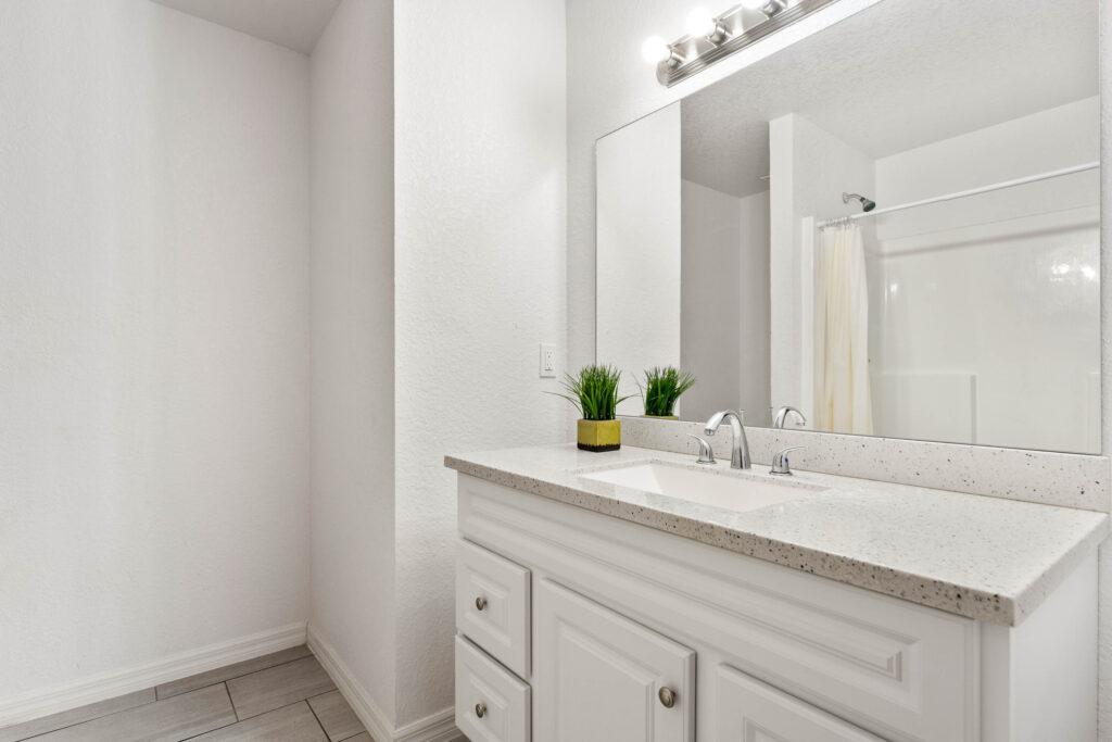 Built in 2020, the single-level rancher has many upgrades, including new tile floors in all the living spaces and quartz counters in both bathrooms. The modern open floorplan boasts vaulted ceilings and lots of natural light.