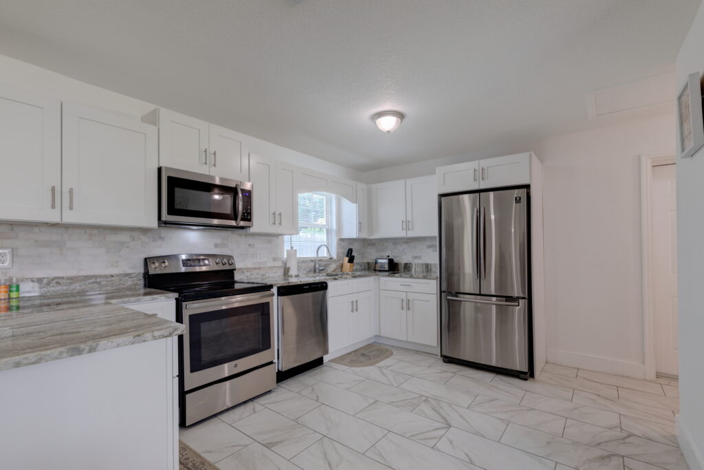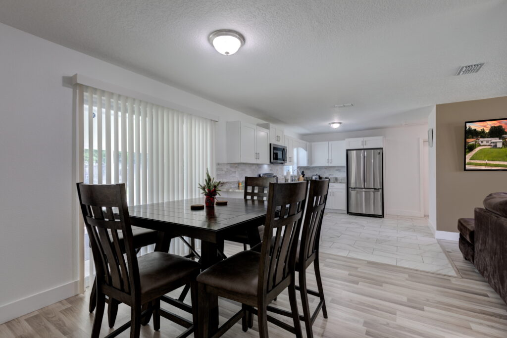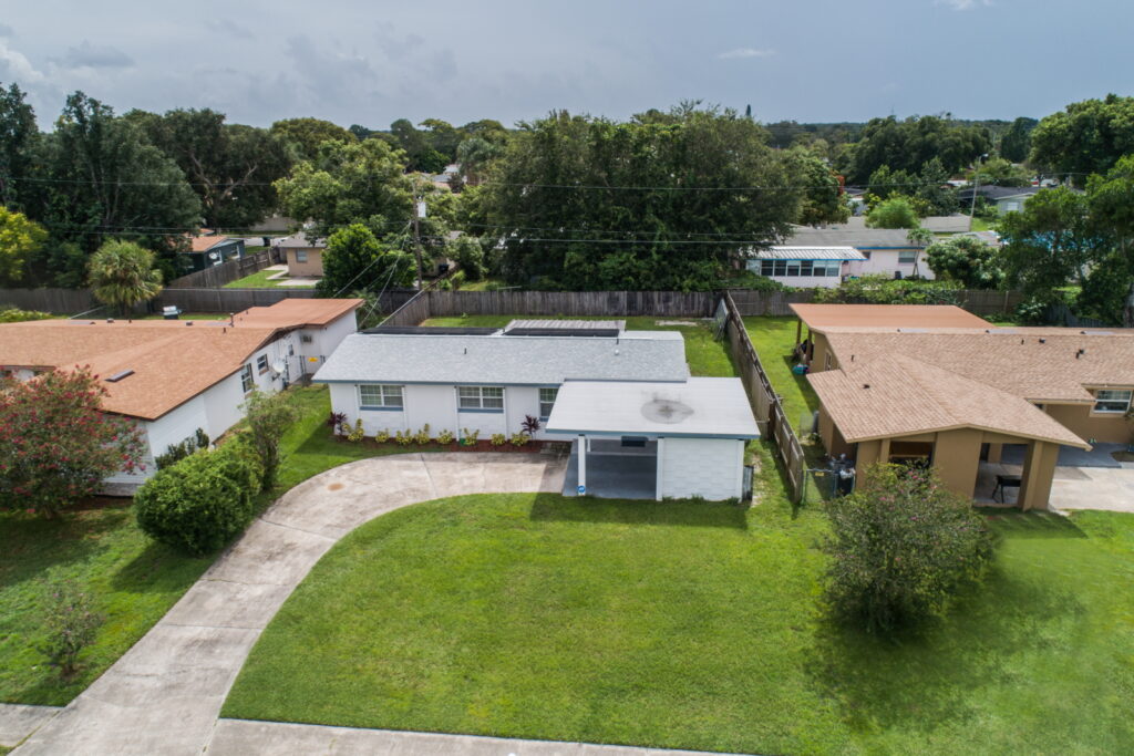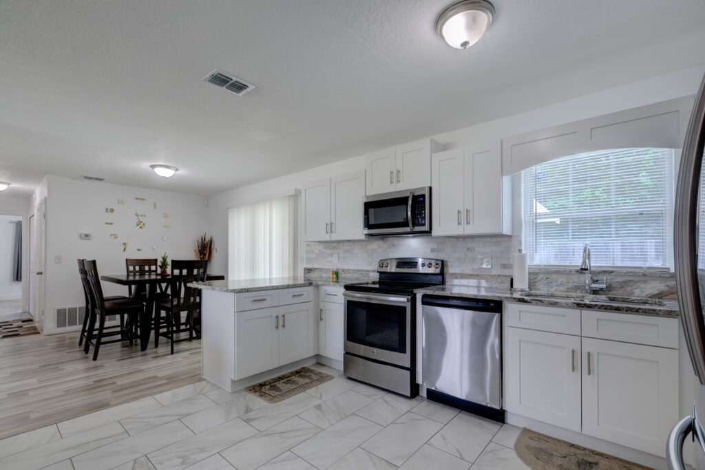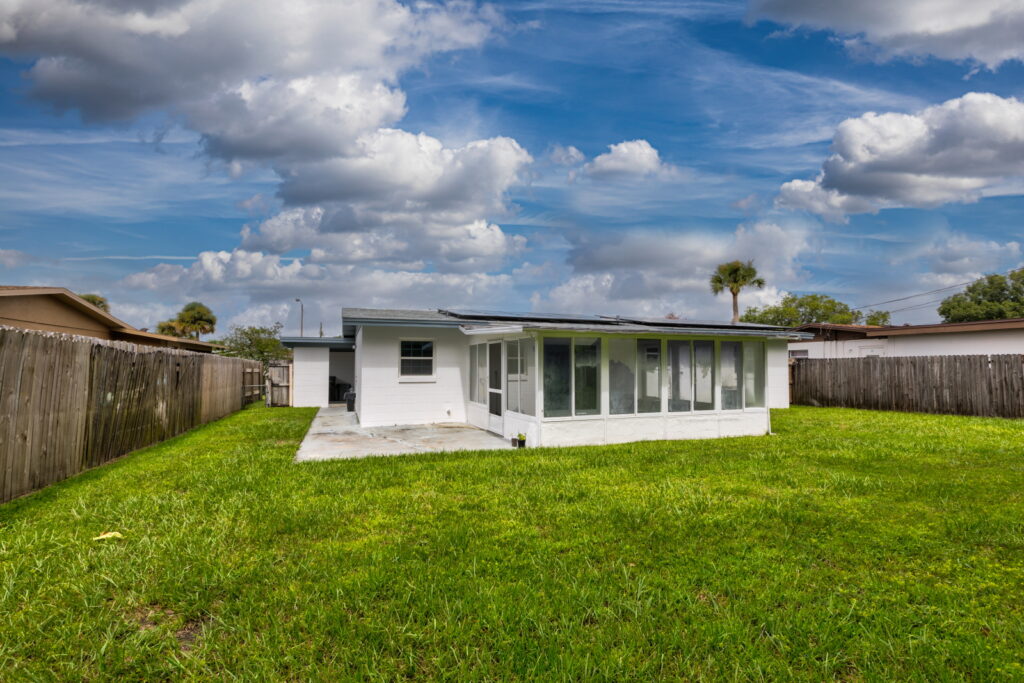 Have you been searching for the PERFECT STARTER HOME?! Well take a look at this FULLY RENOVATED, MOVE-IN-READY, 3 bedrooms, 2 bathrooms home. It has the coziest family room, that opens up into the UPDATED KITCHEN which features GRANITE COUNTERTOP, STAINLESS STEEL APPLIANCES, GORGEOUS TILED BACKSPLASH, and STAINLESS-STEEL DOUBLE SINK. The kitchen is the heart of the home, and as such it has TONS OF COUNTER SPACE and STORAGE to meet the needs of your family. The CRISP CABINETS makes the space bright and airy. Right off the kitchen is the FORMAL DINING ROOM, which has SLIDING DOORS to let in even more sunlight and provides easy access to the yard. Modern floor tiles and a huge WINDOW adds to the overall aesthetic of the space. Just down the hall are the bedrooms. The bedrooms and living room have LAMINATE WOOD FLOOR, while the kitchen, bathrooms and laundry closet has floor TILES. No need to worry about carpet stains or maintenance! This WELL-MAINTAINED home sits on a HUGE, FENCED-IN LOT making it perfect for those barbecues. It also features a COVERED and SCREENED IN PATIO; so, sit back, relax and enjoy your backyard without those pesky mosquitos and flies. Another wonderful feature of this property, SOLAR PANELS!!!! SAVE BIG ON YOUR ELECTRIC BILL!!! That’s not all, there is absolutely NO HOA!!!!! You cannot afford to miss out on this beauty. Call to schedule your showing!!