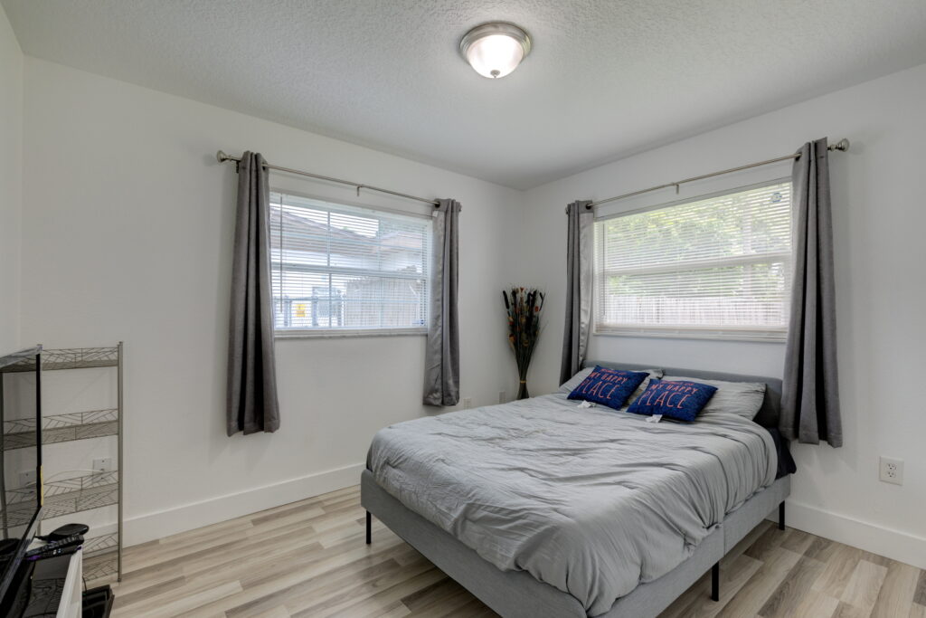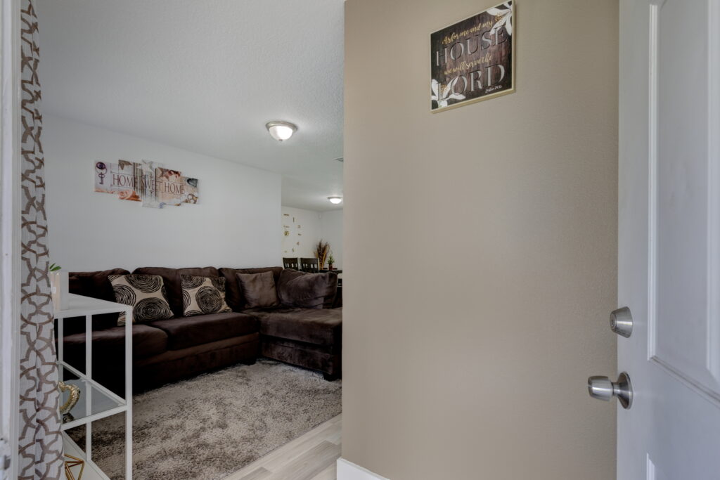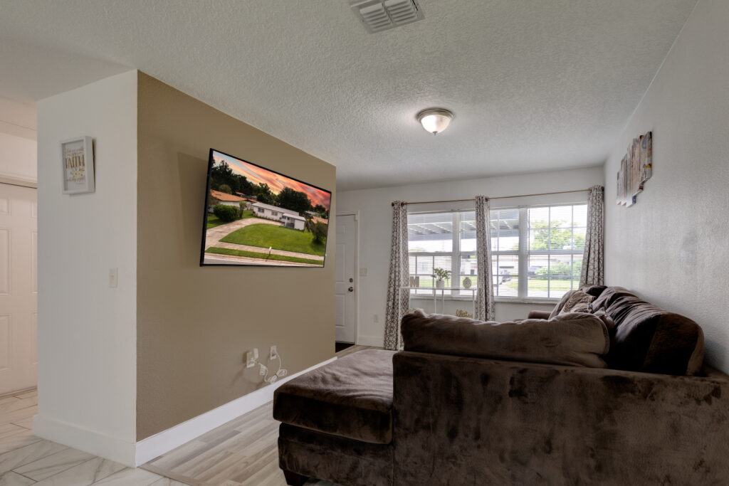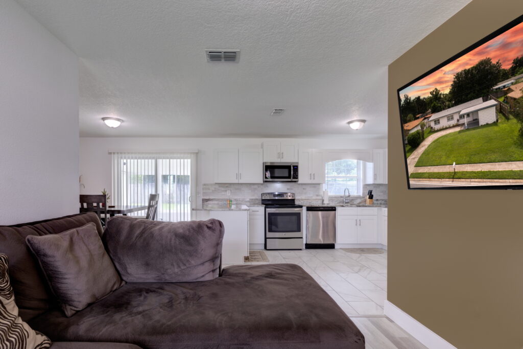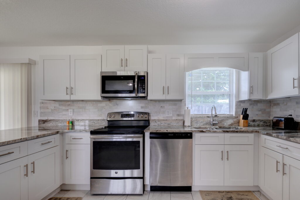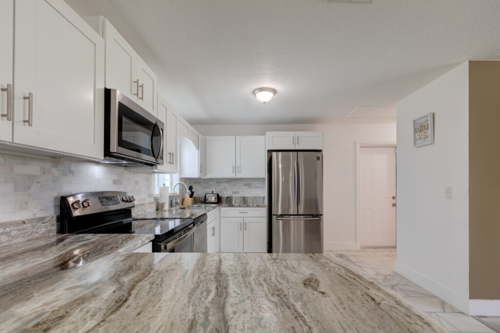 Have you been searching for the PERFECT STARTER HOME?! Well take a look at this FULLY RENOVATED, MOVE-IN-READY, 3 bedrooms, 2 bathrooms home. It has the coziest family room, that opens up into the UPDATED KITCHEN which features GRANITE COUNTERTOP, STAINLESS STEEL APPLIANCES, GORGEOUS TILED BACKSPLASH, and STAINLESS-STEEL DOUBLE SINK. The kitchen is the heart of the home, and as such it has TONS OF COUNTER SPACE and STORAGE to meet the needs of your family. The CRISP CABINETS makes the space bright and airy. Right off the kitchen is the FORMAL DINING ROOM, which has SLIDING DOORS to let in even more sunlight and provides easy access to the yard. Modern floor tiles and a huge WINDOW adds to the overall aesthetic of the space. Just down the hall are the bedrooms. The bedrooms and living room have LAMINATE WOOD FLOOR, while the kitchen, bathrooms and laundry closet has floor TILES. No need to worry about carpet stains or maintenance! This WELL-MAINTAINED home sits on a HUGE, FENCED-IN LOT making it perfect for those barbecues. It also features a COVERED and SCREENED IN PATIO; so, sit back, relax and enjoy your backyard without those pesky mosquitos and flies. Another wonderful feature of this property, SOLAR PANELS!!!! SAVE BIG ON YOUR ELECTRIC BILL!!! That’s not all, there is absolutely NO HOA!!!!! You cannot afford to miss out on this beauty. Call to schedule your showing!!