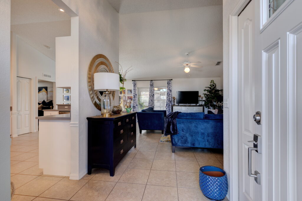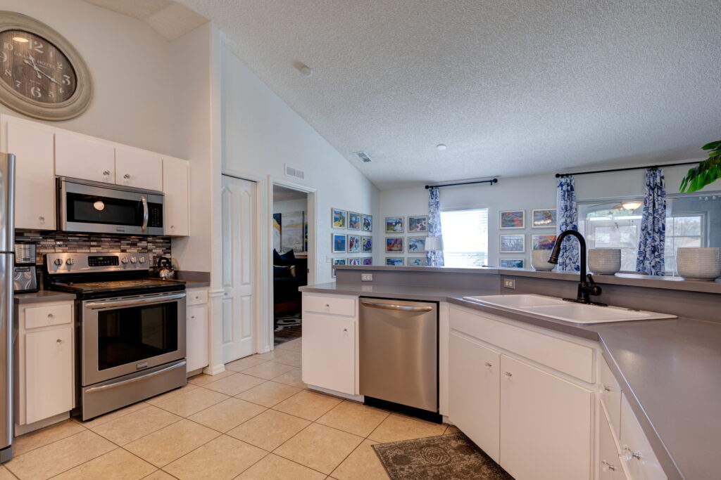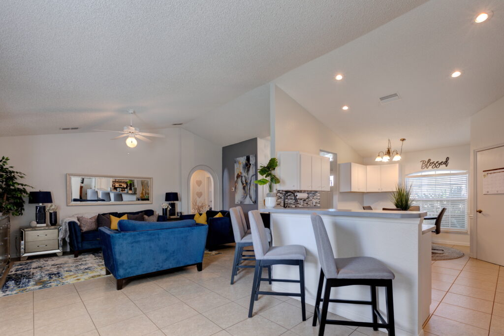 HELLO HOMEBUYERS!! Come take a tour of this magnificently maintained home in the picturesque Terranova community. This cozy 3 bedroom 2 bath home sits on a one of the most beautifully landscaped lot in the community. The tall palm trees, lush vegetation, and well manicured lawn beckons you home. If you seek a home that has been been well loved and well cared for, then look no further! This home features HIGH VAULTED CEILINGS, SPLIT FLOOR PLAN, LIVING AND DINING ROOM COMBO, a spacious EAT IN KITCHEN, SUNROOM and FENCED IN BACKYARD. With low maintenance LAMINATE and TILE FLOORS throughout the home, you don’t need to worry about carpet stains or odors. Crisp cabinets keep the kitchen feeling clean, light, and airy, plus it has ALL STAINLESS STELL APPLIANCES and a CLOSET PANTRY for added storage! The master suit is located to the left side of the home, and it is absolutely charming and INTIMATE. The master bath has a STAND IN SHOWER, glass shower door, and GLASS BLOCK TILES which not only adds privacy, but character and architectural interest to the space. It also has a MEDICINE CABINET. The two additional bedrooms are to the right of the home, and they share a bathroom which has a BATH TUB. One of the bedrooms can be used as a home office, a study, or a library since it is conveniently located next to the bathroom. The home is just 15 minutes for LEGOLAND and PEPPA PIG THEME PARK. It is about 20 minutes from AWARD WINNING WINTER HAVEN HISTORIC DISTRICT with lots of QUAINT SHOPS, BOUTIQUES, CAFES, and RESTAURANTS. However, if you are more into nature and outdoor activities, then there’s a lot to love like the KAYAKING, FISHING, PADDLE BOARDING, and CAMPING, along and on the CHAIN OF LAKES. There are also lots of BARS and RESTAURANTS along the LAKES to enjoy on the weekends or in the evenings. This home is perfect for first time homebuyers, small families, investors looking for a RENTAL PROPERTY or someone who prefers a cozy, low maintenance home!